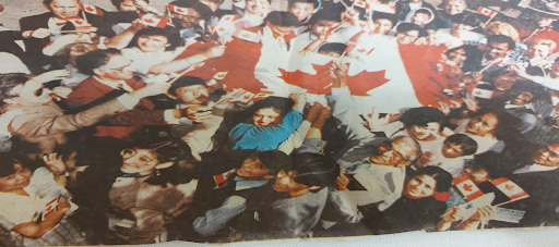 I came to Canada in 1977 when I was only 19 years old. Even though I felt a strong connection to Canada, I never considered applying to be a citizen. After 10 years, I made the decision to apply for citizenship because both my husband and all of my children were citizens of Canada. I received my citizenship on July 1st, and whilst celebrating the moment, a journalist from the Edmonton Journal snapped this picture. The next morning, I found the picture on the Edmonton Journal newspaper. In Canada, I really felt appreciated and connected. I can express myself freely. I have independence here. I have lived here for about 42 years, and my love for Canada is continuing to grow, I am proud to be Canadian.